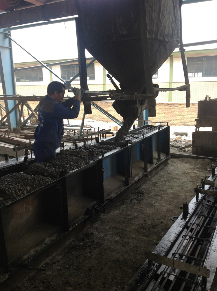بتن ریزی در فالب های کارخانه تولید پایه بتنی انتقال نیرو